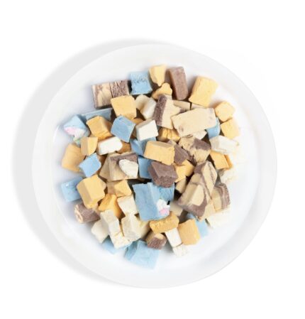4 بسته دسر فریزدرای (روش خشک انجمادی): ۲ بسته بستنی، ۲ بسته توت فرنگی و تکه های بستنی وانیل